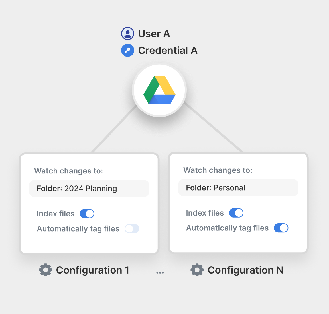 A Configuration is a set of User Settings and Workflow Enablements associated with one connected account (credential), as shown here: