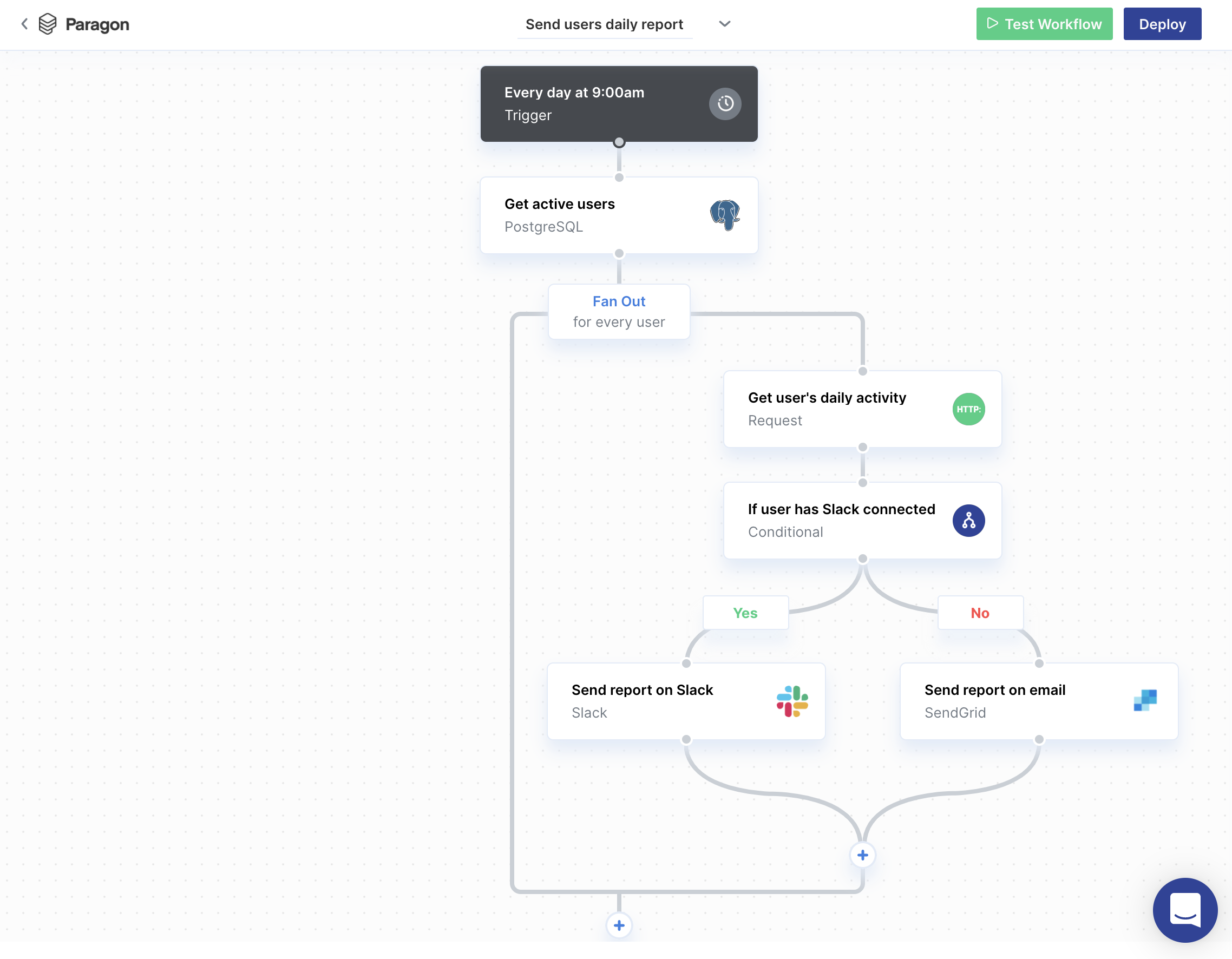 An integration on Paragon that sends daily activity reports to users' Slack workspaces