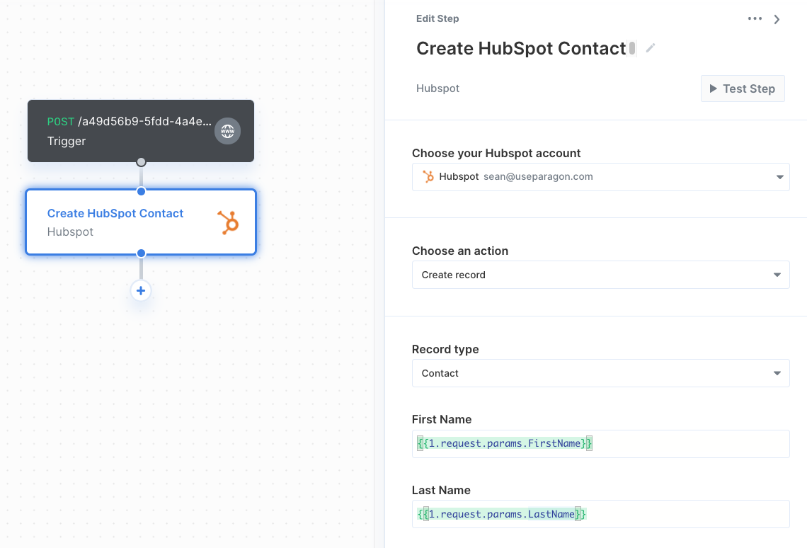 Once your HubSpot account is connected, you can add steps to perform the following actions:- Create record