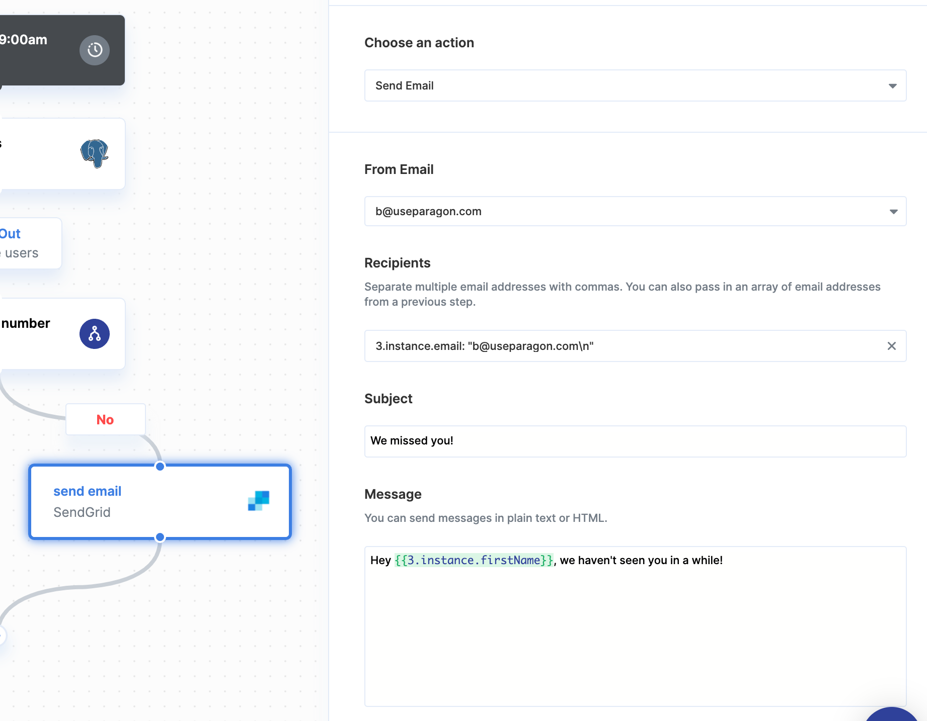 Once your SenGrid account is connected, you can add steps to perform the following actions:- Send email