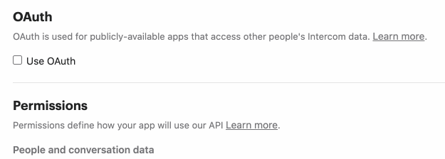 Note: You’ll need to create a new Intercom app if you don’t already have one. To access your customer’s Intercom data by using OAuth, you’ll need to submit your app for a review.